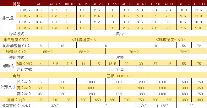 ü皮带传动系列螺杆式空压机技术参数
